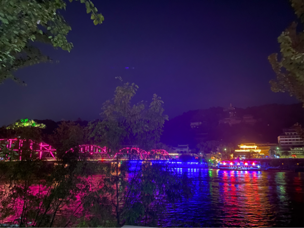 晚上到達(dá)蘭州,從夜市逛到中山橋。一路上遇到的司機(jī)性格熱情樸實(shí),逛了逛司機(jī)推薦的夜市,但是感覺東西質(zhì)量不大行,拿了杯灰豆子從夜市步行到中山橋,途中可以看到河邊的夜景。據(jù)說中山橋是德國公司承建,保質(zhì)期一百年,現(xiàn)已到期,不再通行車輛。晚上的中山橋上是城市娛樂生活的集散地,小攤小販和鮮花音樂。