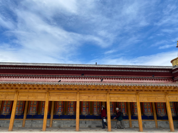 藏傳佛教格魯派的六大寺之一,全世界最有名的藏密學(xué)院,擁有中國最完整的藏傳佛教教學(xué)體系。拉卜楞寺最外圍是世界上最長的轉(zhuǎn)經(jīng)筒,周長有3公里還多,由2000多個(gè)大大小小的轉(zhuǎn)經(jīng)筒組成,轉(zhuǎn)經(jīng)筒大的有一人多高需2-3個(gè)人合圍才能抱住,小的周長則只有1米左右。沿著長廊徒步,依次轉(zhuǎn)動(dòng)這些轉(zhuǎn)經(jīng)筒,每轉(zhuǎn)動(dòng)一次,就等同誦經(jīng)一次祈福。