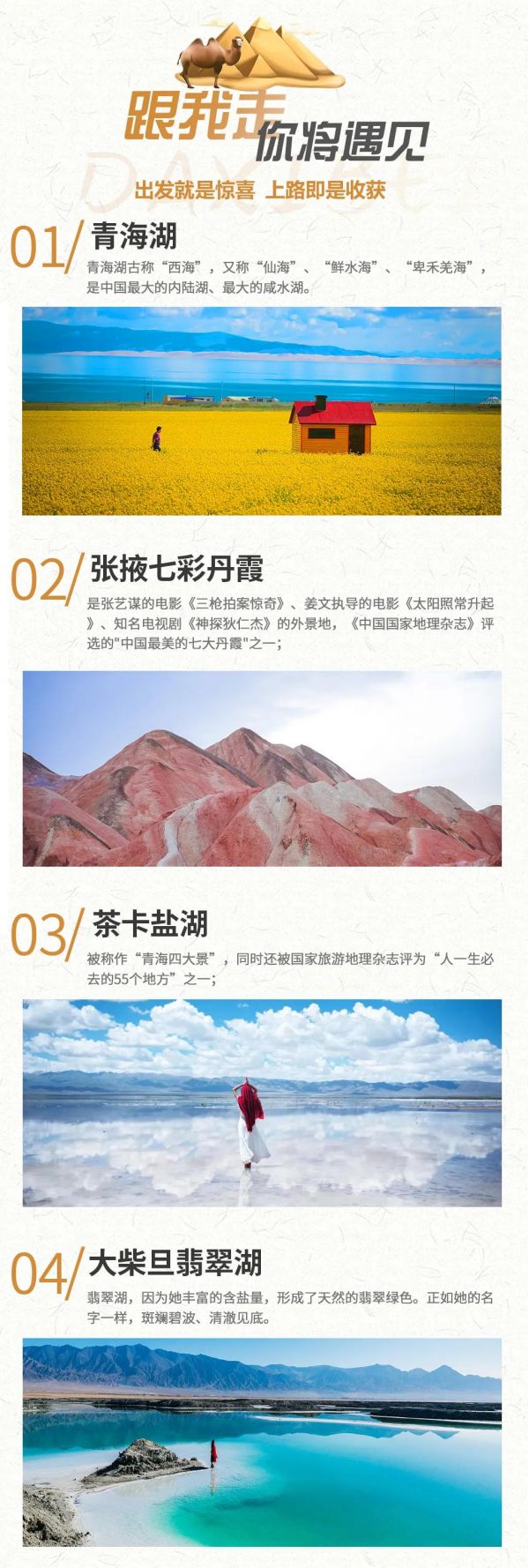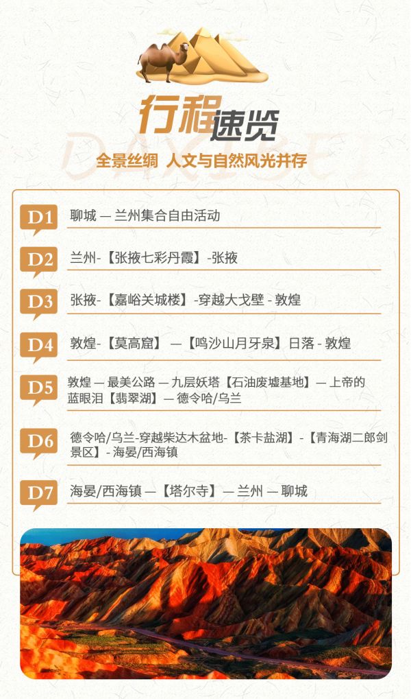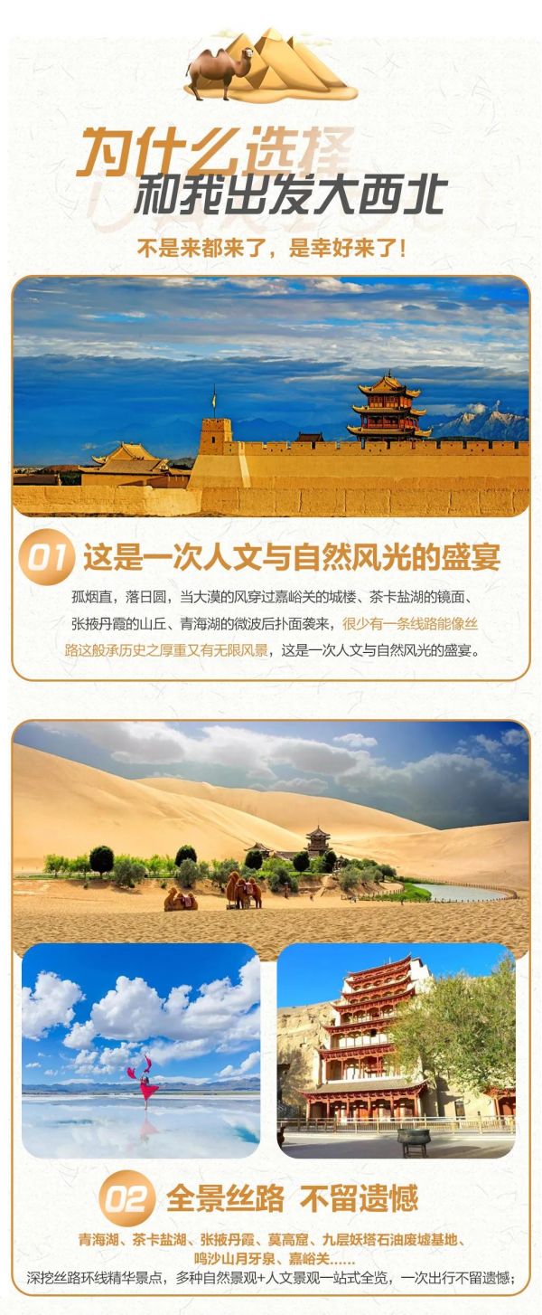 丹霞地質(zhì)公園+嘉峪關(guān)+敦煌+莫高窟+鳴沙山月牙泉+阿克塞石油小鎮(zhèn)+大柴旦翡翠湖+柴達(dá)木盆地+茶卡鹽湖+青海湖二郎劍景區(qū)+塔爾寺