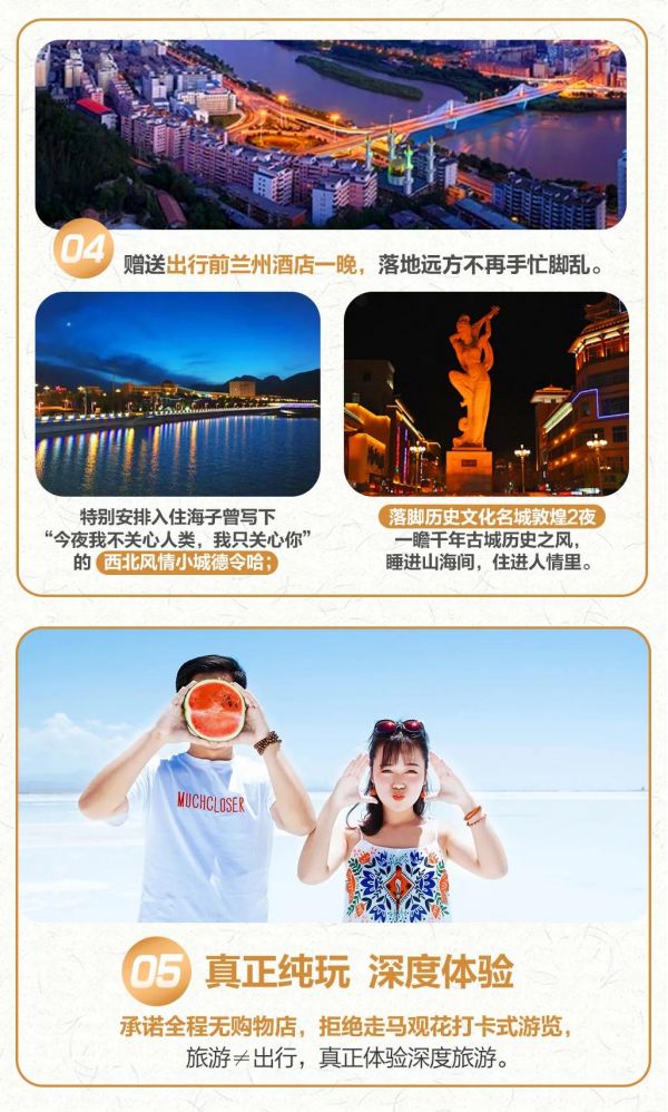 (5)贈送蘭州市區(qū)接機(jī)/接火車服務(wù),23點(diǎn)后由于運(yùn)管規(guī)定不能接機(jī)/接站,敬請諒解;