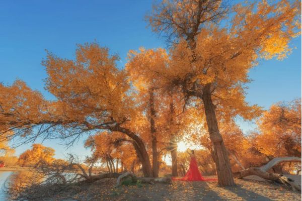4、穿戴合適的服飾:衣飾最好選擇純色為主(紅色、白色等),以紗質(zhì)/絲質(zhì)披巾為主,突出人物色彩。今天大家可以穿一些紅色、藍(lán)色、白色的衣物,搭配胡楊林的漫天黃葉,十分漂亮。