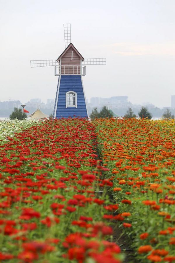 在市區(qū)廣場或公園里,也可以隨處遇到五顏六色的步步高(百日草)花海,五彩斑斕,蕩人心魄。一叢叢不同顏色地盛開在一起,宛如海洋一般浩大,五彩繽紛的色彩點(diǎn)綴其間,營造出來的美感壯觀讓人震撼。
