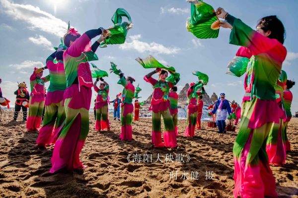 海陽大秧歌是山東省三大秧歌之一,是民間社火中的舞蹈部分,流行于山東半島南翼、黃海之濱的海陽市一帶。海陽大秧歌是一種集歌、舞、戲于一體的民間藝術(shù)形式,它遍布海陽的十余處鄉(xiāng)鎮(zhèn),并輻射至周邊地區(qū)。海陽大秧歌素以粗獷奔放、感情充沛、風(fēng)趣幽默的表演風(fēng)格著稱于世。在表演形式上,分大場(chǎng)子和小場(chǎng)子兩種,大場(chǎng)子是群舞,鑼鼓鏗鏘、萬馬奔騰,宛若大河滔滔。小場(chǎng)子多是雙人舞、多人舞,恰似小橋流水,一波三折,美不勝收。海陽大秧歌獨(dú)具的優(yōu)秀的民間藝術(shù)特色和濃郁的生活氣息,吸引了大批藝術(shù)家、學(xué)者及國(guó)內(nèi)外游客前來學(xué)習(xí)、觀賞。