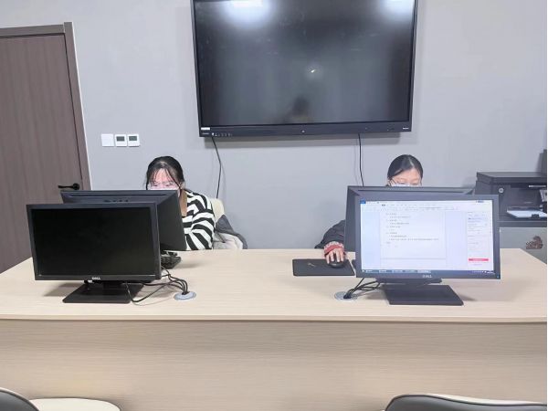 早上8:15,楊倚晴和苗苗來到了工作室。苗苗在吸地板,楊倚晴在擦桌子,整理打掃實訓室,維持實訓室的衛(wèi)生。