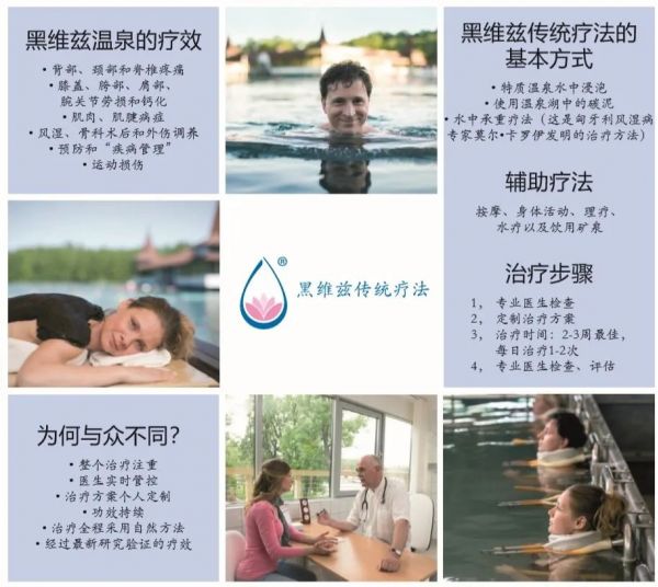 因此,雖然浴療是黑維茨湖水治療效果的基礎(chǔ),但同時(shí)也包括其它治療法,比如著名的重量浴,各種醫(yī)療按摩,以及飲水治療等。