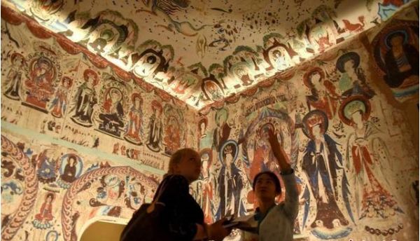 莫高窟,坐落于河西走廊的西部盡頭的敦煌。它的開鑿從十六國(guó)時(shí)期至元代,前后延續(xù)約1000年,這在中國(guó)石窟中絕無(wú)僅有。它既是中國(guó)古代文明的一個(gè)璀璨的藝術(shù)寶庫(kù),也是古代絲綢之路上曾經(jīng)發(fā)生過(guò)的不同文明之間對(duì)話和交流的重要見證。