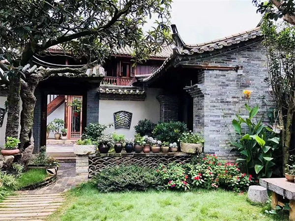 石屏水云居客棧本為民國年間富商張正堂為其母親建蓋,如今被改造成了客棧,但依舊保留著當時設計者的審美,綠樹掩映著青瓦白墻,小橋流水安靜地穿過四合院落。