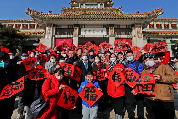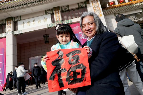 “有的觀眾為參觀中國(guó)美術(shù)館賀歲大展而來(lái),獲得由館長(zhǎng)等書法家現(xiàn)場(chǎng)書寫的‘福’字,特別開心;也有一些熟悉中國(guó)美術(shù)館的觀眾,是專程為了在大年初一接福而來(lái)。”中國(guó)美術(shù)館的工作人員告訴記者,大年初一寫“?!彼透YR新春活動(dòng)已成為中國(guó)美術(shù)館的文化惠民傳統(tǒng)項(xiàng)目,深受廣大觀眾歡迎,除2020年疫情原因外已持續(xù)舉辦8年。