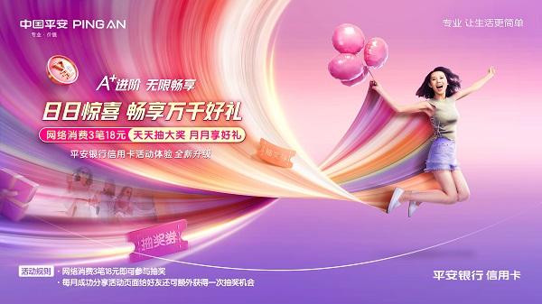 3月20日,平安銀行信用卡活動(dòng)體驗(yàn)全新升級(jí)以“A+進(jìn)階 無(wú)限暢享”為主題正式開啟,在平安口袋銀行APP上線活動(dòng)聚合入口,匯聚六大類活動(dòng),以玩法體驗(yàn)、覆蓋場(chǎng)景、用戶服務(wù)及業(yè)務(wù)融合的全面升級(jí).