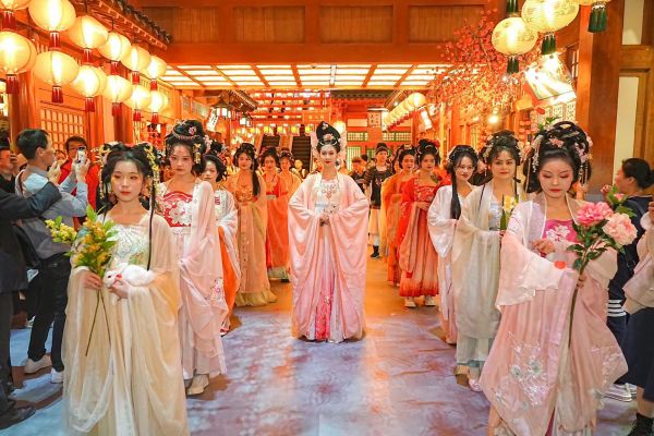 蓮步輕搖,伴著絲竹聲聲,花魁一舞迎春;美景佳人,回眸一笑,便是長安春日最美的風(fēng)景,3月4日,西安長安十二時(shí)辰主題街區(qū)依托花朝節(jié)舉辦了“錦衣霓裳·游長安”主題活動(dòng)。