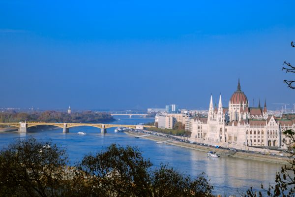布達(dá)佩斯宛若一位天生麗質(zhì)的仙女,高貴優(yōu)雅,依偎在多瑙河畔。鏈子橋、伊麗莎白橋、裴多菲橋……是她頸上的一串串項鏈;1904年落成的國會大廈是她胸前的一顆徽章;兩岸掩映在綠樹叢中古趣盎然的街道和幢幢別墅是她長裙上的飄帶。她那脫離塵埃的一種清澈氣質(zhì),可謂是超出了畫圖而化生了音樂的神韻。