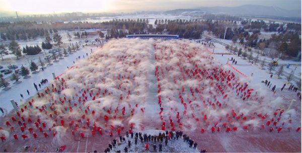 人們熱衷以各種形式體驗(yàn)極寒,最熱門的活動(dòng)就是潑水成冰了,滾燙的熱水遇到極寒的溫度,潑出去的水霧瞬間凝結(jié)成美麗的冰花,綻放出絢麗多彩的光環(huán)。