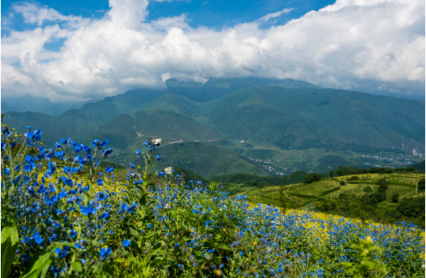 最近,在越西發(fā)現(xiàn)了一處絕美的“仙境”,藍(lán)紫色的野花繁星似地密布在,沒(méi)過(guò)膝蓋的綠草之中成群的蝴蝶在其間翩翩起舞。
