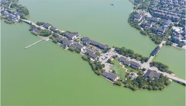 一池湖水,湖心小亭。一端是喧囂都市,一端是靜謐湖畔,七座小石塔以北斗七星排列,煙波浩渺獨有一番韻味。湖水清澈碧綠,微風(fēng)徐徐,無限風(fēng)光盡收眼底。