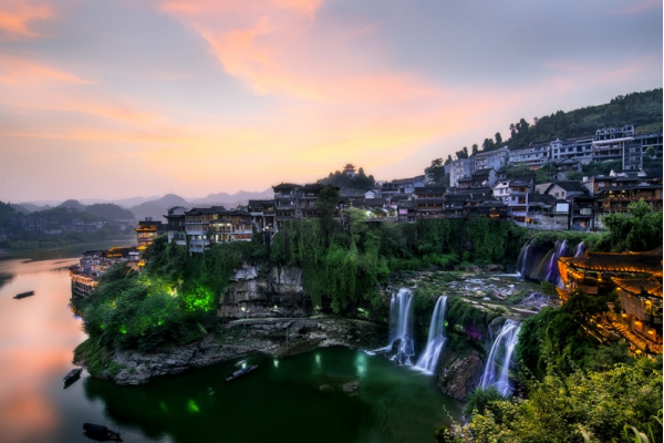 芙蓉鎮(zhèn)是一座具有兩千年歷史的古鎮(zhèn),也是一個(gè)山城,原名王村,位于酉水之陽,距縣城48公里。原為西漢酉陽縣治所,因得酉水舟楫之便,上通川黔,下達(dá)洞庭,自古為永順通商口岸,素有“楚蜀通津”之稱。享有酉陽雄鎮(zhèn)、湘西“四大名鎮(zhèn)”、“小南京”之美譽(yù)?,F(xiàn)位于湖南省湘西土家族苗族自治州永順縣。