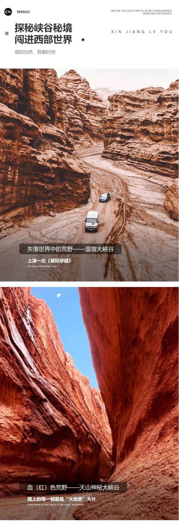 今天從庫爾勒出發(fā)前往獨(dú)庫公路旁的【天山神秘大峽谷】,這里有大片赤色山崖峰林,就像一個外星球無人之地,獨(dú)庫公路南段最驚艷的景觀。大自然億萬年的風(fēng)刻雨蝕才得以造就了這條紅褐色大峽谷,溝中有谷 谷中有溝 暗紅色的山體千姿百態(tài) 相當(dāng)有視覺沖擊力。在峽谷的側(cè)壁上可以看到明顯的褶曲和斷裂線,朝夕的光影變化最為夢幻,是中國十大最美峽谷之一,被譽(yù)為“中國版羚羊古”。天山神秘大峽谷獨(dú)有的野性、荒涼氣質(zhì),讓這里非常適合拍攝“大場景”大片。