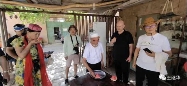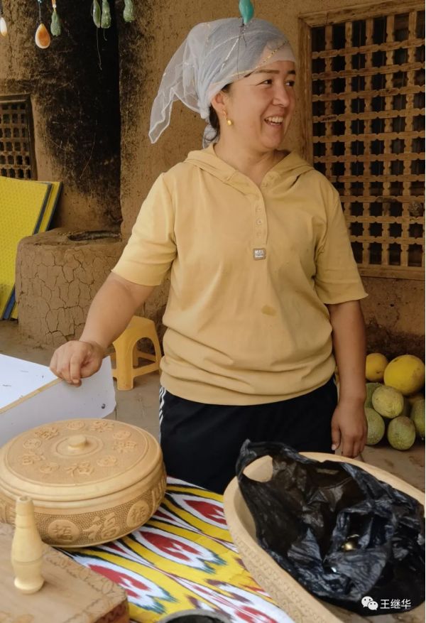 繼續(xù)前行看到一個(gè)搞抖音直播的維族姑娘。給我們說自己叫瑪依熱,在山東高校免費(fèi)上過大學(xué)。畢業(yè)就回到了家鄉(xiāng)。搞了個(gè)網(wǎng)上直播帶貨,買哈密瓜,生意非常好。