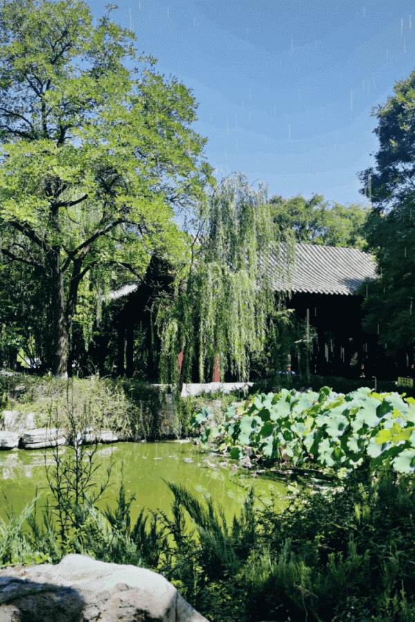 清晨,這里大概是聊城第一個蘇醒的地方,晨練的大爺用一陣響亮的皮鞭聲打破黎明的寂靜。不過若是趕上下雨天,這里便有了鬧市中的恬淡悠遠。