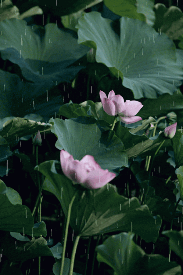 若此時我們也乘著游船,蕩漾在湖心中央,閉上眼,聽著雨聲,噼噼啪啪,恍若珍珠落于玉盤之中,湖水與雨滴便一同在譜寫華章。