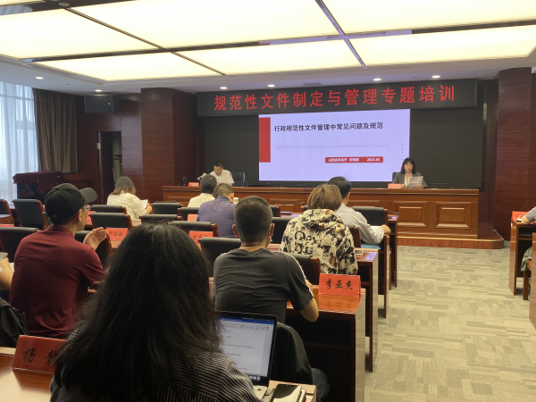 為進一步加強行政規(guī)范性文件制定與備案管理工作,從源頭上防止不合規(guī)文件出臺,提升廳機關工作人員依法行政能力,5月26日,山西省文化和旅游廳組織開展了行政規(guī)范性文件制定與備案業(yè)務培訓。廳政策法規(guī)處處長張巧萍主持培訓并對做好規(guī)范性文件制定與備案工作提出要求,省司法廳立法一處處長張明厚作專題輔導,廳機關各處室、廳屬各單位有關工作人員參加培訓。