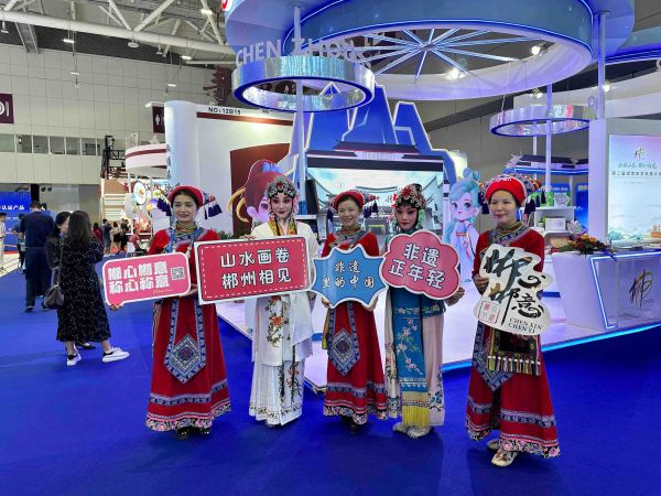 緊鄰湖南展館的郴州展館以郴州文旅資源為主打,設(shè)置郴州文旅資源展區(qū),以燈箱廣告形式展示天下莽山、溫泉之都、碧水丹霞等8張名片。展區(qū)內(nèi)還設(shè)置了“郴品郴味”地方美食特產(chǎn)展區(qū)和“郴心郴意”文創(chuàng)非遺展區(qū),推介郴州美食,展示大布江拼布繡、湘南木雕、桂陽剪紙等非遺項目及文創(chuàng)產(chǎn)品。