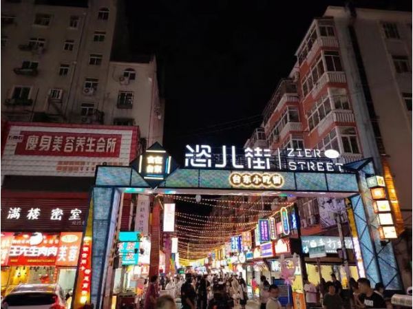 當(dāng)夜的序曲輕輕奏響,青島市臺東步行街上,充滿復(fù)古氣息的燈牌漸次亮起,各式特色小吃攤位上煎炒烹炸聲夾雜著吆喝聲、嬉笑聲,吸引著不少市民游客前來這里休閑消費,感受濃濃人間煙火氣。