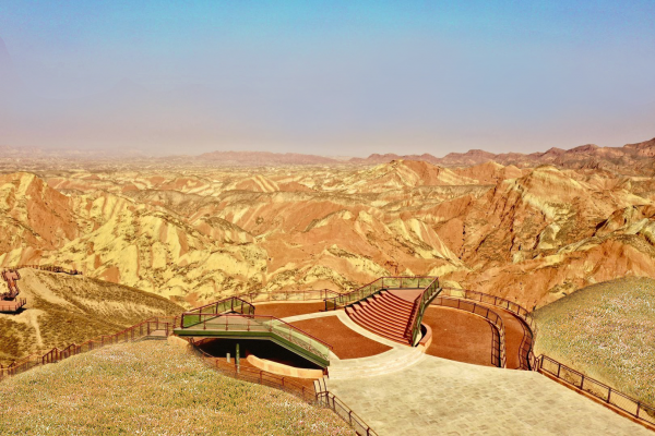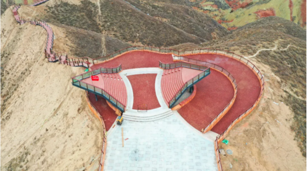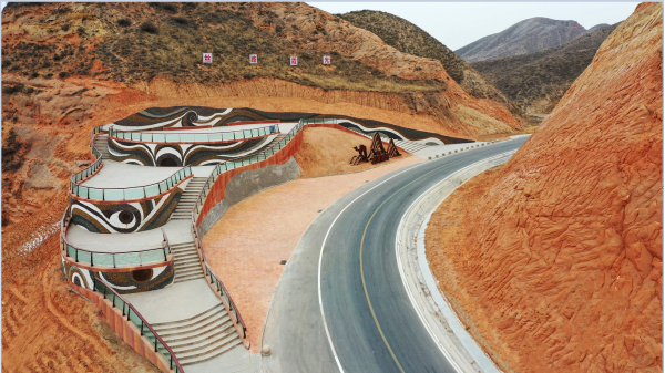 絲路霞光觀景平臺以丹霞風貌作為設計背景切入,大面積采用流線型設計手法,將一帶一路的精神貫穿始終