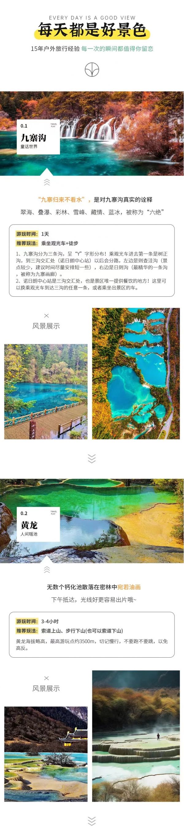 4、九寨溝景區(qū)實行分區(qū)域開放,開放區(qū)域為溝口經(jīng)諾日朗瀑布至長海,扎如溝的扎如寺及日則溝的鏡海;其中,長海、五彩池、鏡海、諾日朗瀑布、樹正群海、雙龍海瀑布、扎如寺等景觀原則上為步行游覽區(qū),具體游覽方式請聽從隨車講解員安排。