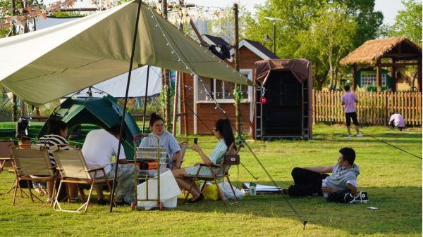 在城市近郊,“沉浸式”“慢節(jié)奏”的游玩方式受到青睞?!拔覀兲氐靥崆邦A(yù)訂了帳篷,帶家人來體驗清晨看日出、晚上數(shù)星星的奇妙之旅,孩子們特別喜歡這次露營體驗?!币瞬忻裰軉陶f。