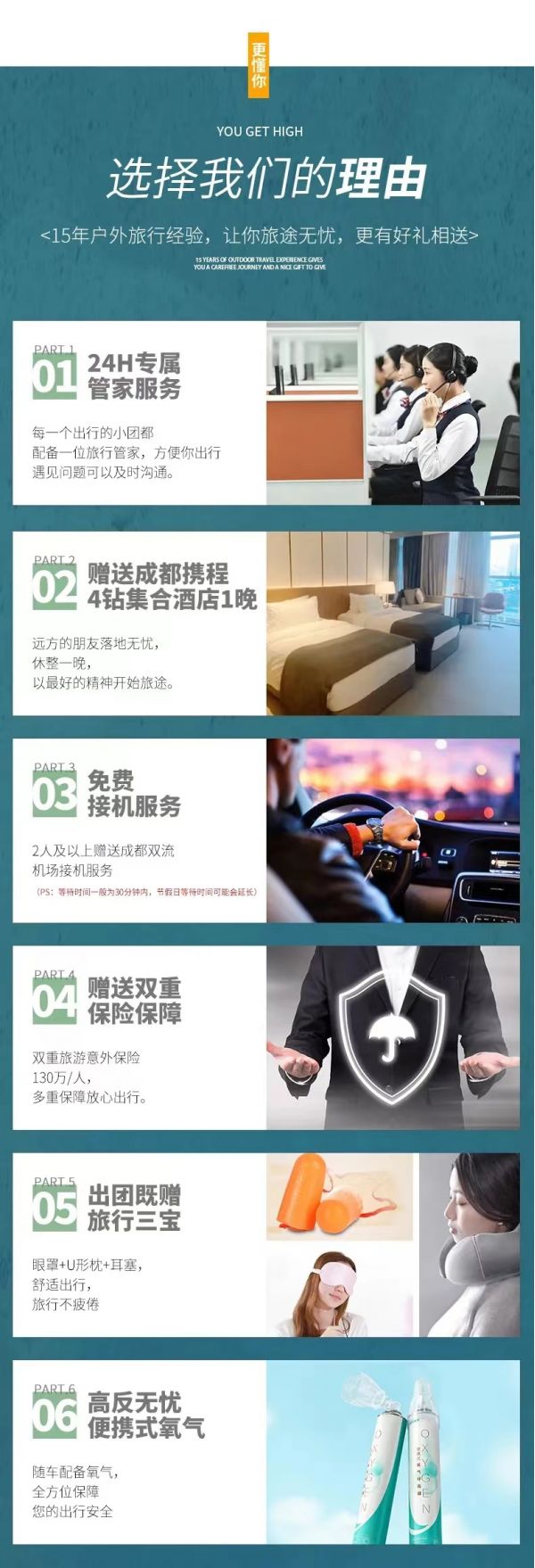 3、沿途景區(qū)景點(diǎn)、餐廳、廁所、加水點(diǎn)、高原緩沖區(qū)內(nèi)設(shè)有小賣部、超市、旅游紀(jì)念品、手工藝土特產(chǎn)等販賣攤點(diǎn),非我方安排,請(qǐng)游客根據(jù)自身需求及興趣選擇消費(fèi),并保留好購(gòu)物小票以便后續(xù)維權(quán);購(gòu)物時(shí)請(qǐng)保管好隨身攜帶的物品,不到人多、擁擠的地方購(gòu)物,不當(dāng)眾清點(diǎn)錢包里的鈔票,也不隨商品推銷人員到偏僻地方購(gòu)物或取物。