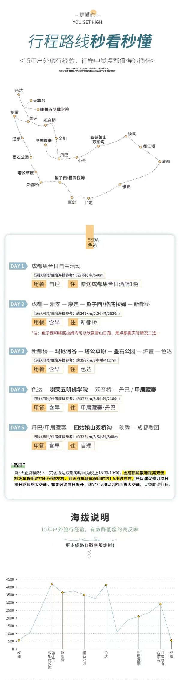 請(qǐng)對(duì)應(yīng)使用我方色達(dá)2-6人VIP自由小團(tuán)5日行程,因使用其它行程造成的投訴,責(zé)任自負(fù);請(qǐng)仔細(xì)閱讀以上行程文檔,同意并保證遵守我方安排,以免為您帶來(lái)不必要的麻煩;如產(chǎn)生合同糾紛或人身意外事故,按《中華人民共和國(guó)合同法》、《道路交通法》、《保險(xiǎn)賠償條例》裁定;本行程作為旅游合同附頁(yè)與旅游合同同等法律效力。
