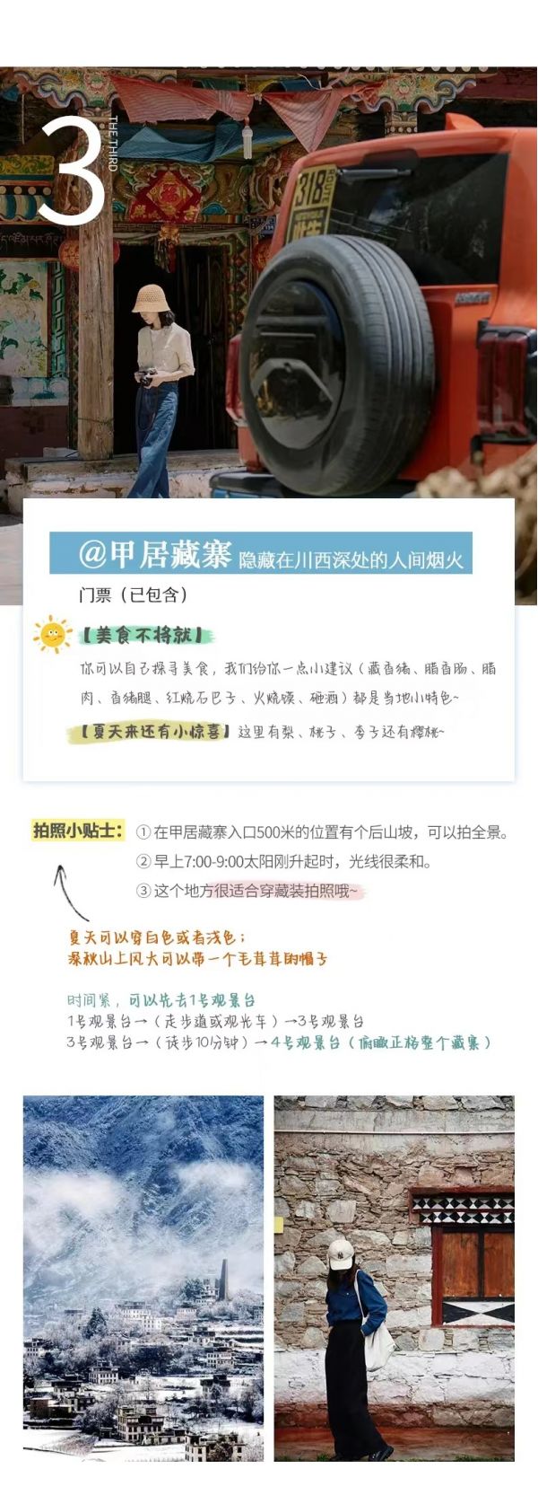 甲居藏寨—雅拉雪山觀景臺(tái)—墨石公園—塔公草原—魚(yú)子西—新都橋鎮(zhèn)