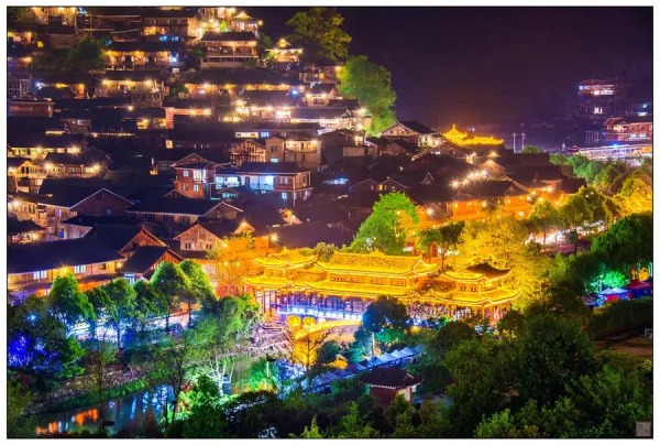 古鎮(zhèn)依山就勢,城墻用巨石筑于懸崖上,由東、西、南、北四座城門及一座長城構(gòu)成,古鎮(zhèn)內(nèi)設(shè)計(jì)精巧、工藝精湛的明清古建筑交錯密布,寺廟、樓閣畫棟雕梁、飛角重檐相間,鎮(zhèn)內(nèi)佛、道、天主和基督教四教并存,和諧相處,有興趣的游客,可以細(xì)細(xì)打卡尋寶。