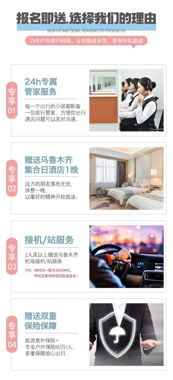 3、新疆機(jī)場(chǎng)安檢嚴(yán)格,一般提前3小時(shí)抵達(dá)機(jī)場(chǎng),加上市區(qū)交通擁堵,為保證您不誤飛機(jī),送機(jī)時(shí)間可能會(huì)比較早,請(qǐng)您諒解。(提前4-5小時(shí)送機(jī))。