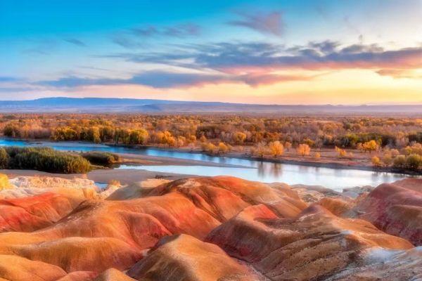 ? 用餐:酒店含早,正餐自理在夕陽西下時(shí)候,前往【五彩灘】外圍游覽,這里是額爾齊斯河的一段特殊的河灘,南岸是蔥郁的樹木和草地,北岸則是寸草不生的土地,一河兩岸,各有洞天。這里的土丘擁有豐富的地貌色彩,被稱為上帝打翻的調(diào)色板,尤其是天氣晴好夕陽西下時(shí)分,進(jìn)入景區(qū)后看到余暉灑在河岸邊的丘陵,顏色瑰麗令人炫目。穿行在土地的溝壑之中,兩側(cè)的土壤或呈灰褐色,或呈金黃色,還可以登上觀景臺(tái),俯瞰整個(gè)景區(qū)帶給眼睛的色彩沖擊,舉起相機(jī)拍出你想要的大片。來到布爾津一定要去熱鬧的河堤夜市逛一逛,品嘗這里特產(chǎn)的烤魚,配上一杯香甜的格瓦斯,一掃當(dāng)日的旅途辛勞。】