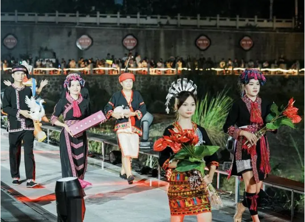 11月11日晚,海南省五指山市民族時裝“村秀”在五指山通什鎮(zhèn)小島公園上演,向市民游客展示了五指山的農(nóng)耕文化、紅色文化、農(nóng)墾文化、黎族五大方言區(qū)傳統(tǒng)服飾、黎族傳統(tǒng)紡染織繡技藝等豐富的文化資源,呈現(xiàn)了五指山這座城市的獨特韻味。
