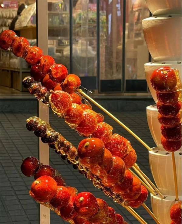 冰糖葫蘆是中國的傳統(tǒng)小吃,每年一到這個時候,大街小巷就出現(xiàn)了各種各樣的冰糖葫蘆的身影,但現(xiàn)在和以前也不一樣了,除了山楂冰糖的糖葫蘆,小攤位上更多了一些砂糖橘、巧克力、獼猴桃、糖漿草莓等諸多品種。傳統(tǒng)的冰糖葫蘆用山楂串成,糖稀被凍硬,看起來既好吃又好看。而現(xiàn)在為了迎合年輕人的口味,也衍生出了許多水果糖葫蘆。