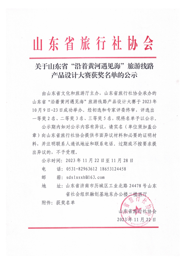 最后,恭喜劉寶平老師榮獲“沿著黃河遇見?!甭糜尉€路產(chǎn)品設(shè)計(jì)大賽一等獎(jiǎng)!相信他的設(shè)計(jì)將為廣大游客帶來(lái)獨(dú)特的旅游體驗(yàn),同時(shí)也為聊城市旅游事業(yè)注入了新的活力和魅力。讓我們一起期待更多優(yōu)秀的旅游線路設(shè)計(jì)和創(chuàng)意的誕生!