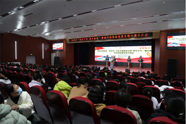 由中共聊城市委宣傳部、聊城市文化和旅游局、聊城市文學(xué)藝術(shù)界聯(lián)合會聯(lián)合主辦,聊城市文化館、聊城市京劇院、聊城市豫劇院、聊城市雜技團(tuán)、聊城高鐵新區(qū)發(fā)展服務(wù)中心承辦,東昌府區(qū)文化館、聊城文軒中學(xué)、聊城東方教育集團(tuán)協(xié)辦的2023年聊城市“百靈鳥”文化志愿服務(wù)項(xiàng)目“兩河之約 遇見高鐵”濟(jì)鄭高鐵建設(shè)慰問演出活動在聊城文軒中學(xué)西校區(qū)成功舉辦。