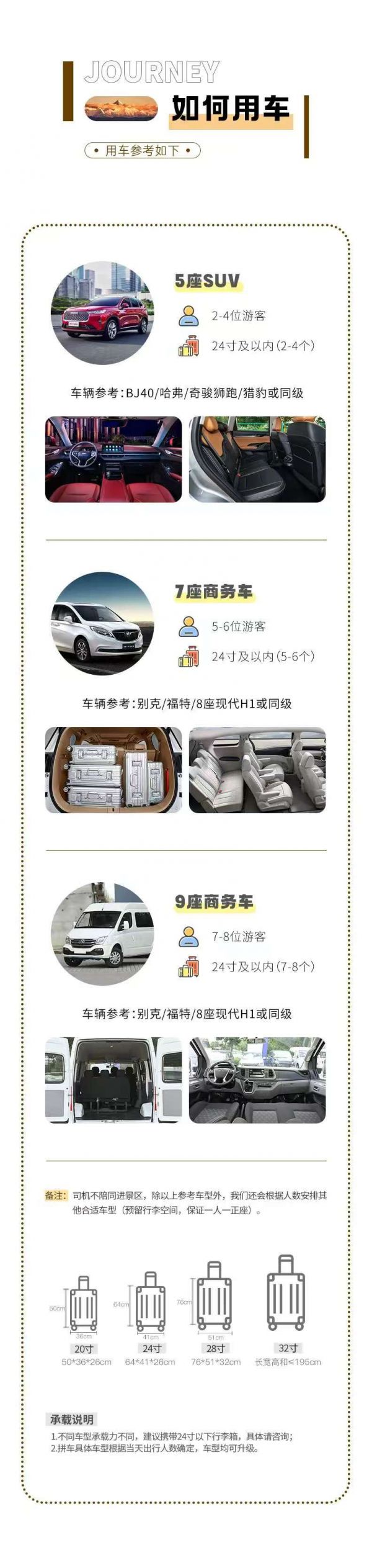 備注:車型承載力有限,攜帶行李為24寸或以下行李箱。