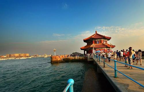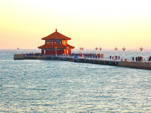 青島棧橋始建于清光緒十八年(1892年),是青島最早的軍事專用人工碼頭建筑,是青島的重要標(biāo)志性建筑物和著名風(fēng)景游覽點(diǎn) 。青島棧橋全長440米,寬8米,鋼混結(jié)構(gòu)。橋南端筑半圓形防波堤,堤內(nèi)建有民族形式的兩層八角樓,名“回瀾閣”,游人佇立閣旁,欣賞層層巨浪涌來,“飛閣回瀾”被譽(yù)為“青島十景”之一。