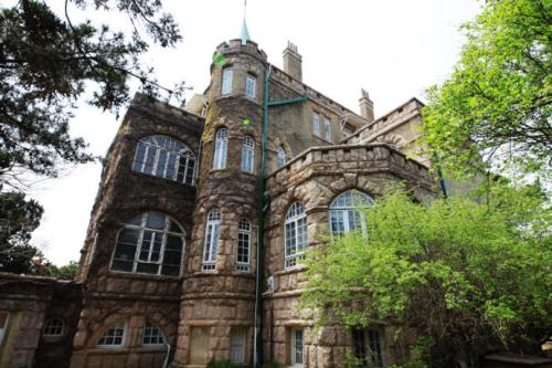 到達(dá)花石樓后自由游覽花石樓及八大關(guān),預(yù)計(jì)游覽1小時(shí)?;ㄊ瘶侵越谢ㄊ瘶?,主要是因?yàn)槠鋬?nèi)部使用“滑石”作為墻壁內(nèi)飾裝飾的,因?yàn)榛捕鹊?,很大一部分墻面保存的不好,被人為刻上了文字。連每個(gè)房間的基本功能都看不出來?;ㄊ瘶堑耐庥^保存十分好,洋樓城堡式的設(shè)計(jì)。還有一點(diǎn)就是它的外部建筑材料是花崗巖。