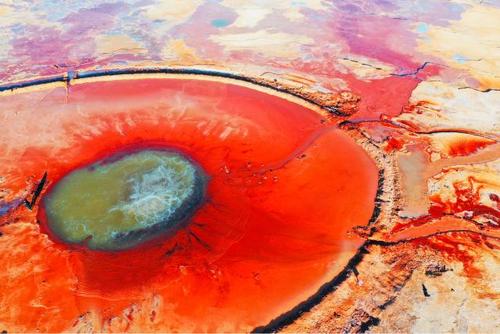 艾肯泉位于青海省海西蒙古族藏族自治州茫崖市花土溝鎮(zhèn)莫合爾布魯克村,被稱為“大地之眼”、“惡魔之眼”。 艾肯泉直徑有10多米,泉眼如同沸騰的開水,不斷翻滾上涌,泉眼周圍硫磺礦物質(zhì)長期沉淀,色彩斑斕。從空中俯瞰,泉眼與噴涌出的泉水以及周圍土地上深紅色環(huán)帶狀的沉淀物,組成了一個奇特的瞳孔造型,仿佛一只鑲嵌在大地上的眼睛。
