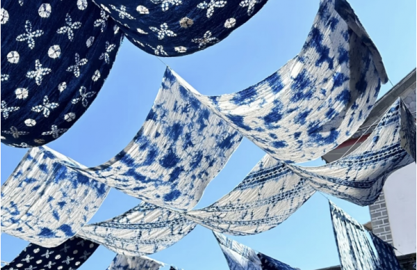 制作時(shí),以棉白布為載體,用天然藍(lán)靛作染料,經(jīng)手工繪圖、扎縫、浸染、漂洗等工序完成。通過獨(dú)特的扎結(jié)技法,布料浸染后形成藍(lán)白相間的精美圖案,常見的有蝴蝶、花草、幾何紋樣等,每一種都寄托著白族對(duì)美好生活的向往。
