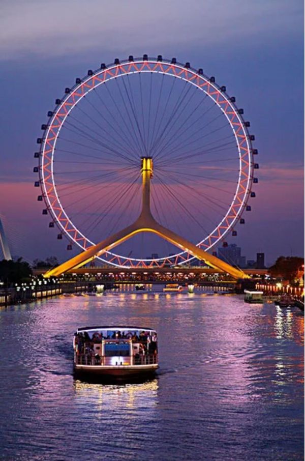 摩天輪直徑為110米,頂點高度為120米,相當于35層樓房的高度。外部裝掛有48個360度透明座艙,每個座艙可容納8個人,可同時供384個人進行觀光。