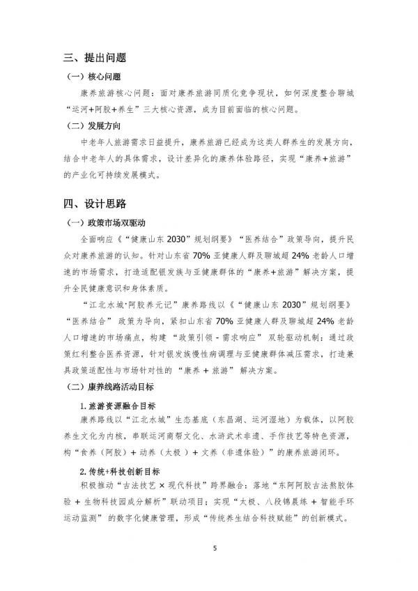 “江北水城·阿膠養(yǎng)元記”康養(yǎng)路線以《“健康山東2030”規(guī)劃綱要》“醫(yī)養(yǎng)結(jié)合”政策為導(dǎo)向,緊扣山東省70%亞健康人群及聊城超24%老齡人口增速的市場痛點(diǎn),構(gòu)建“政策引領(lǐng)-需求響應(yīng)”雙輪驅(qū)動(dòng)機(jī)制:通過政策紅利整合醫(yī)養(yǎng)資源,針對銀發(fā)族慢性病調(diào)理與亞健康群體減壓需求,打造兼具政策適配性與市場針對性的“康養(yǎng)+旅游”解決方案。