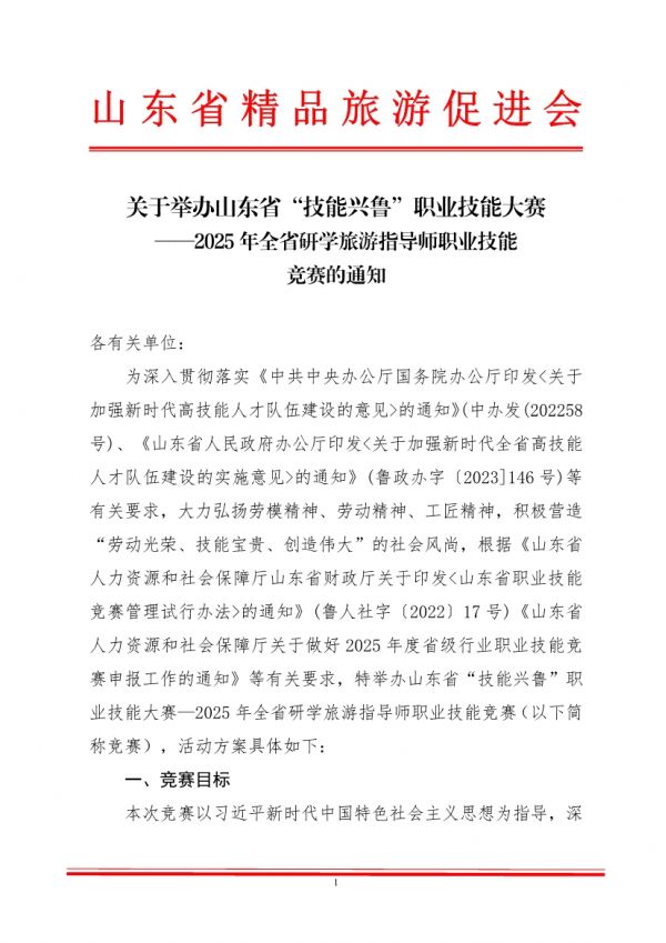 下列鏈接為”關(guān)于開展山東’技能興魯‘職業(yè)大賽2024年全省研學指導師職業(yè)技能的通知“原文件:
