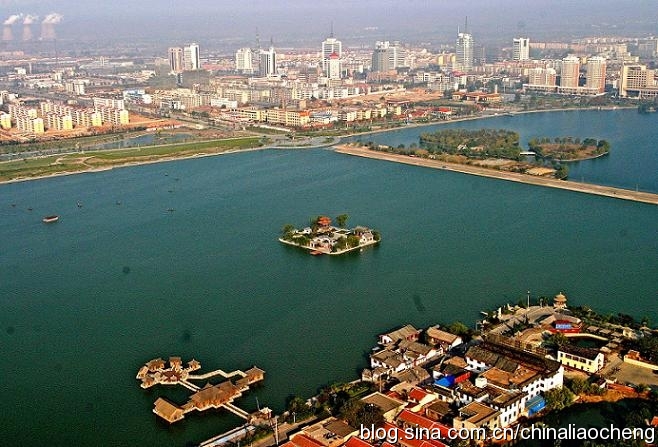 風(fēng)光秀麗的東昌湖環(huán)繞聊城古城一周,始建于宋熙寧三年(公元1070年)。當(dāng)時(shí)因修筑城墻以及護(hù)城堤挖土而成,后經(jīng)歷代開闊,現(xiàn)在面積已達(dá)6.3平方公里,與杭州西湖相當(dāng),是濟(jì)南大明湖的4—5倍。東昌湖由10個(gè)湖區(qū)和20塊水面組成,湖岸線長達(dá)16千米,是中國江北地區(qū)罕見的大型城內(nèi)湖泊,她為聊城這座城市增加了靈氣,是聊城的最靚點(diǎn)。她以黃河水為源,積水約1680萬立方米,水深3—5米,常年不竭。東昌湖水清澈,無任何工業(yè)污染;景色宜人,令游客流連忘返,是國家釣魚基地,適宜水上游樂項(xiàng)目的開發(fā)與建設(shè)。