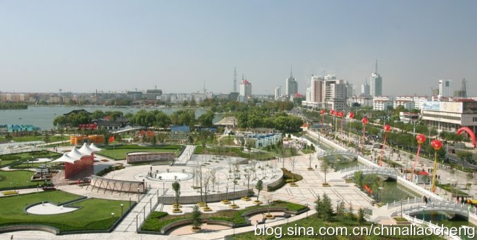 湖濱公園是以東昌湖為依托建設(shè)的一處市內(nèi)開放式大型公園。這里原是一片沼澤地、蘆葦蕩,僅有一些低矮平房。從2000年開始,我市投資3億多元,完成拆遷3萬多平方米,修建園區(qū)道路2萬平方米,種植草坪60多公頃,栽植各類喬灌木20余萬株,建成了占地1600余畝的湖濱公園。在湖濱公園道路廣場的設(shè)計(jì)中,力求“園景設(shè)路、路從景出、路出自然”,體現(xiàn)渾然天成的藝術(shù)風(fēng)格。在游人可駐足觀賞、留影的地方,適當(dāng)擴(kuò)寬路面;小型廣場中心或路邊,設(shè)有雕塑、浮雕、噴泉、花坊、花缽、石凳等園林小品分布其間。自北向南,騰龍廣場、旱噴廣場、生肖廣場、綠葉廣場、金鳳廣場,形式各異,獨(dú)具特色。水面寬20米、長達(dá) 2000米的湖濱渠穿插其中,與東昌湖交相輝映,渠上13座風(fēng)景橋造型別致。從空中俯視,整個(gè)公園像一條綠色的、鑲滿翡翠寶石的霞披披在東昌湖肩上,使東昌湖變得更加美麗動人。
