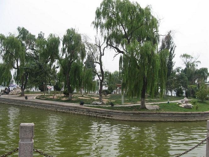 東昌湖水域面積6.3平方公里,與杭州西湖相當(dāng),是南京莫愁湖的18倍;平均水深3米,蓄水量是杭州西湖的2倍。“一湖翡翠千重秀,清風(fēng)瀲滟蕩古城。”您現(xiàn)在看到的就是風(fēng)光旖旎、聞名遐邇的東昌湖,東昌湖又稱胭脂湖,中國(guó)古典名著《聊齋志異》中的一篇胭脂的故事就發(fā)生在這里。東昌湖始掘于宋熙寧三年,筑城取土而成,城外自然成河,恰似一條美麗的玉帶環(huán)繞古城。它與杭州西湖、南京莫愁湖并譽(yù)為我國(guó)三大美女湖。東昌湖是一個(gè)美女湖,可是有根據(jù)的哦,在《聊齋志異》中,傳說(shuō)東昌湖是美女胭脂浣紗的地方。說(shuō)起東昌湖的成因,也與美女有著不解之緣,相傳很久以前聊城一帶下起了滂沱大雨,平地一片汪洋,在城南百余里處黃河又決了口,圍著城池沖出一個(gè)湖來(lái),遼闊無(wú)邊,深不可測(cè)。有一年王母娘娘和玉皇大帝帶著仙女仙童云游至此,見(jiàn)這偌大湖面清澈透明,映出五彩霞光,留戀多時(shí)不肯離去。這時(shí)隨行而來(lái)的雌凰仙子看出了王母和玉帝的心思,于是奏道:"如此數(shù)千畝碧波勝過(guò)天庭瑤池,何不令小仙在此種花植樹(shù)、建亭設(shè)苑以供游憩之用?"王母、玉帝應(yīng)允了此事,從此雌凰仙子留于當(dāng)?shù)?,湖中于是有了六角攢尖飛檐亭,奇花異草遍布,岸邊則綠樹(shù)成陰,柳浪翻滾。如今的胭脂和仙女都已遠(yuǎn)去,不過(guò)煙波浩淼的湖泊,流光溢彩的河流,成為這座城市富貴的財(cái)富。二十世紀(jì)九十年代以前,東昌湖岸邊雜草叢生,沼澤滿地,垃圾隨處傾倒。東昌湖像一位蒙塵蒙垢的少女,靚麗的風(fēng)姿蕩然無(wú)存。九十年代后,巧借京九鐵路、邯濟(jì)鐵路、濟(jì)聊館高速公路三路建設(shè)用土,新建聊城電廠用水,投入資金1.1億元,對(duì)東昌湖進(jìn)行清淤整治。可以這樣說(shuō),在中國(guó)江北,還沒(méi)有哪一座城市擁有這樣多的水,它南依黃河,是中華母親河的乳汁滋潤(rùn)了這片肥沃的土地。綜觀聊城全境,流域面積在30平方公里以上的河流有23條,其中100平方公里以上的有3條。黃河在南部奔騰咆哮東去,古運(yùn)河從中部蜿蜒曲折穿過(guò),衛(wèi)河從西部挾風(fēng)裹浪北流;馬頰河、徒駭河縱橫交錯(cuò),東昌湖、魚(yú)丘湖交相輝映。僅聊城市區(qū),湖、河水域面積就多達(dá)13平方公里,占市區(qū)總面積的三分之一,這一優(yōu)勢(shì)是中國(guó)江北許多城市無(wú)法比擬的。城中有水,水中有城,城水一體,交相輝映的山東聊城,不愧為中國(guó)長(zhǎng)江以北的第一水城。
